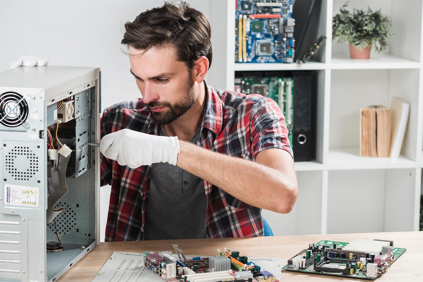Service de réparation informatique couvrant hardware et software, assuré par un technicien expérimentée pour une solution rapide et fiable.